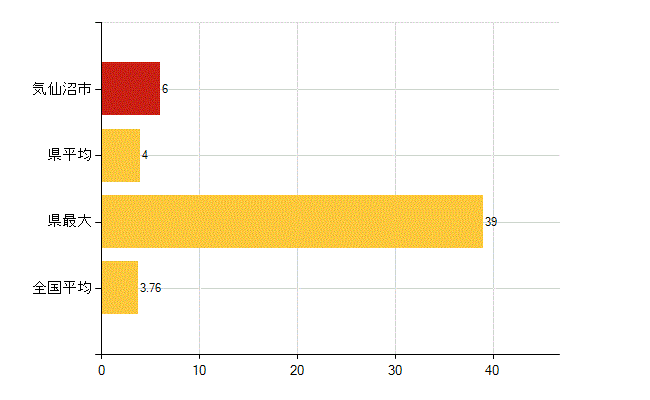 気仙沼市の介護老人福祉施設数は6所、児童福祉施設数(助産施設・児童遊園を除く)は15所、 保育所入所待機児童数は9人、保育所在所児数は0名、国民健康保険被保険者数は463人です。