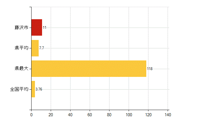 藤沢市の介護老人福祉施設数は11所、児童福祉施設数(助産施設・児童遊園を除く)は47所、 保育所入所待機児童数は39人、保育所在所児数は277名、国民健康保険被保険者数は4717人です。