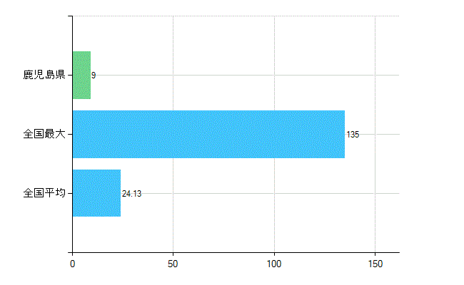 鹿児島県には歯科診療所が223施設あります。人口に対する歯科の施設数の比率は全国12位と、高い状況です。