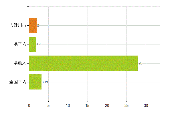 吉野川市にいる薬剤師の総数は90名で、その内、薬局業務の従事者総数は43人、代表者数は11人、調剤業務の従事者数は、31人おります。その他MR等も含め、 医薬品関係企業の従事者総数は5人、医薬品製造販売業・製造業(研究・開発、営業、その他) 医薬品関係企業の従事者総数は0人、医薬品販売業(薬種商を含む)従事者が5名いるエリアです。