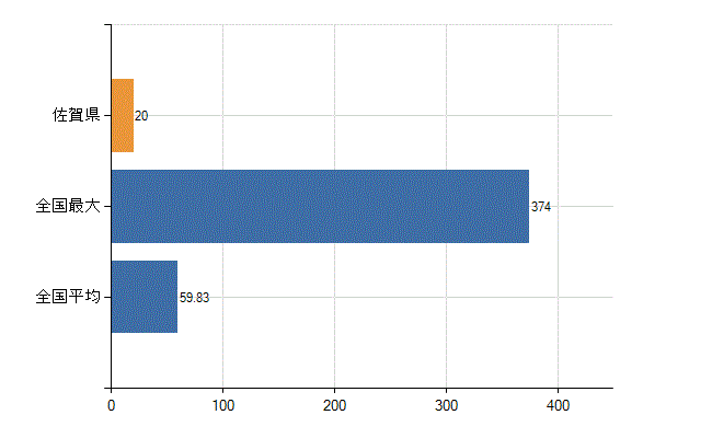 佐賀県には病院が94施設、クリニックが693施設あります。人口に対する医療施設数の比率は全国16位と、平均的状況です。一方、人口あたりの医師数は全国16位の都道府県になっています。