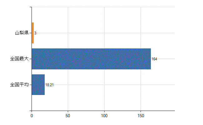 山梨県には病院が52施設、クリニックが682施設あります。人口に対する医療施設数の比率は全国24位と、平均的状況です。一方、人口あたりの医師数は全国31位の都道府県になっています。