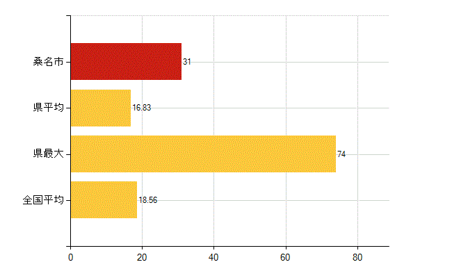 桑名市の介護老人福祉施設数は4所、児童福祉施設数(助産施設・児童遊園を除く)は31所、 保育所入所待機児童数は25人、保育所在所児数は0名、国民健康保険被保険者数は2755人です。