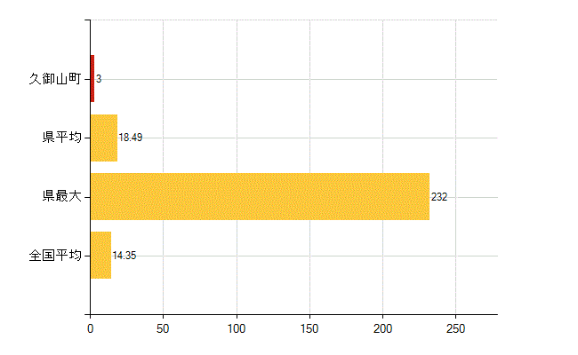 久御山町の介護老人福祉施設数は1所、児童福祉施設数(助産施設・児童遊園を除く)は3所、 保育所入所待機児童数は3人、保育所在所児数は0名、国民健康保険被保険者数は364人です。