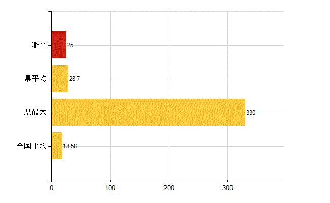 灘区の介護老人福祉施設数は4所、児童福祉施設数(助産施設・児童遊園を除く)は25所、 保育所入所待機児童数は13人、保育所在所児数は0名、国民健康保険被保険者数は1309人です。