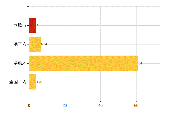 西脇市の介護老人福祉施設数は4所、児童福祉施設数(助産施設・児童遊園を除く)は8所、 保育所入所待機児童数は8人、保育所在所児数は0名、国民健康保険被保険者数は984人です。