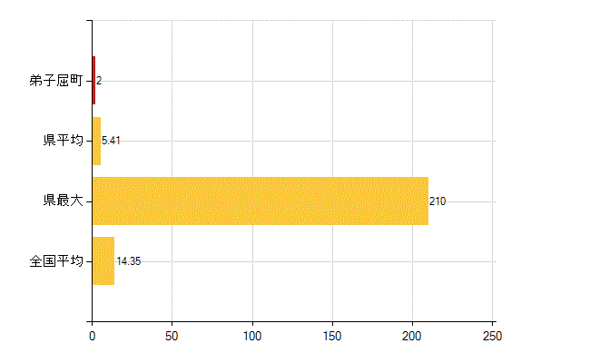 弟子屈町の介護老人福祉施設数は1所、児童福祉施設数(助産施設・児童遊園を除く)は3所、 保育所入所待機児童数は2人、保育所在所児数は0名、国民健康保険被保険者数は125人です。