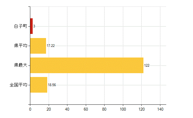白子町の介護老人福祉施設数は1所、児童福祉施設数(助産施設・児童遊園を除く)は3所、 保育所入所待機児童数は3人、保育所在所児数は0名、国民健康保険被保険者数は261人です。