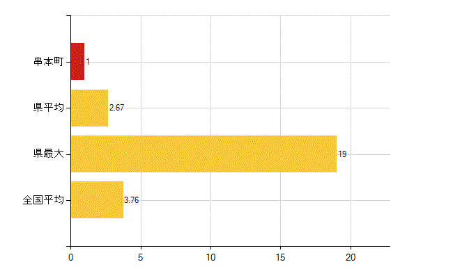 串本町の介護老人福祉施設数は1所、児童福祉施設数(助産施設・児童遊園を除く)は4所、 保育所入所待機児童数は3人、保育所在所児数は0名、国民健康保険被保険者数は285人です。