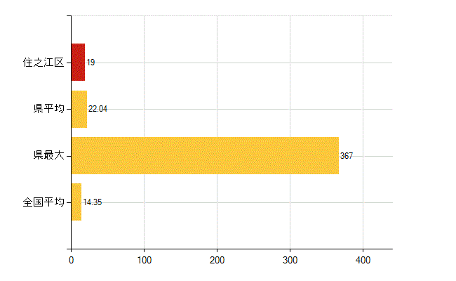 住之江区の介護老人福祉施設数は3所、児童福祉施設数(助産施設・児童遊園を除く)は21所、 保育所入所待機児童数は19人、保育所在所児数は0名、国民健康保険被保険者数は2328人です。