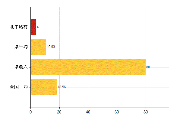 北中城村の介護老人福祉施設数は1所、児童福祉施設数(助産施設・児童遊園を除く)は4所、 保育所入所待機児童数は2人、保育所在所児数は36名、国民健康保険被保険者数は163人です。