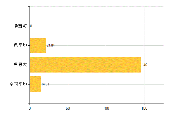 多賀町の介護老人福祉施設数は2所、児童福祉施設数(助産施設・児童遊園を除く)は2所、 保育所入所待機児童数は1人、保育所在所児数は0名、国民健康保険被保険者数は184人です。