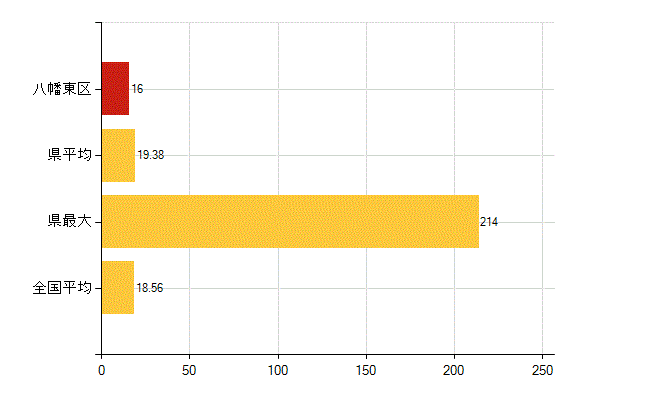 八幡東区の介護老人福祉施設数は3所、児童福祉施設数(助産施設・児童遊園を除く)は16所、 保育所入所待機児童数は11人、保育所在所児数は0名、国民健康保険被保険者数は1207人です。