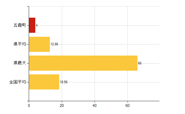 五霞町の介護老人福祉施設数は1所、児童福祉施設数(助産施設・児童遊園を除く)は4所、 保育所入所待機児童数は2人、保育所在所児数は0名、国民健康保険被保険者数は178人です。