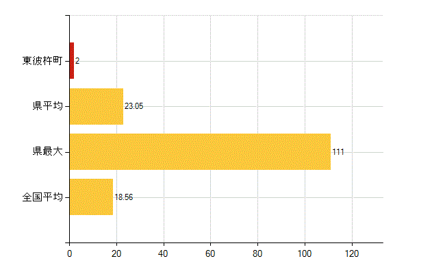 東彼杵町の介護老人福祉施設数は1所、児童福祉施設数(助産施設・児童遊園を除く)は2所、 保育所入所待機児童数は2人、保育所在所児数は0名、国民健康保険被保険者数は176人です。