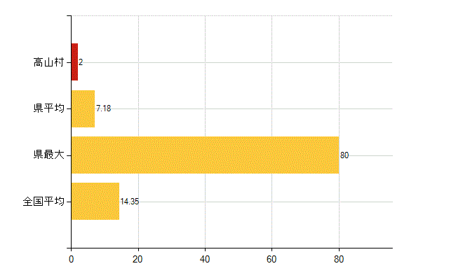 高山村の介護老人福祉施設数は1所、児童福祉施設数(助産施設・児童遊園を除く)は2所、 保育所入所待機児童数は2人、保育所在所児数は0名、国民健康保険被保険者数は219人です。
