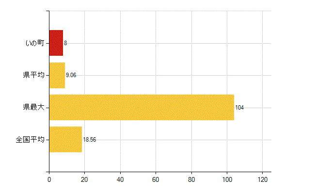いの町の介護老人福祉施設数は2所、児童福祉施設数(助産施設・児童遊園を除く)は8所、 保育所入所待機児童数は8人、保育所在所児数は0名、国民健康保険被保険者数は515人です。