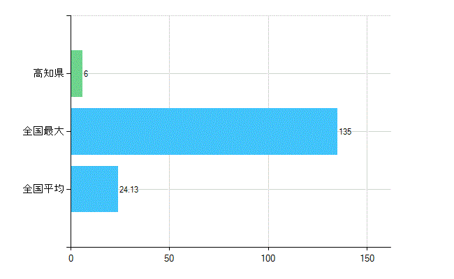 高知県には歯科診療所が121施設あります。人口に対する歯科の施設数の比率は全国20位と、平均的状況です。